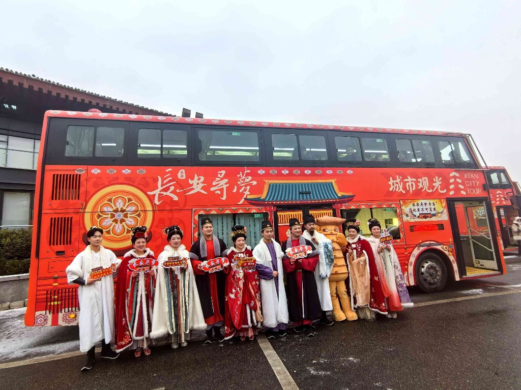 中國年最西安,潮西安新玩法,“乘巴士、觀秦風、習漢學、品唐韻”慢享西安古城魅力,快來乘坐“西安城市觀光車”感受一場穿越之旅吧。
