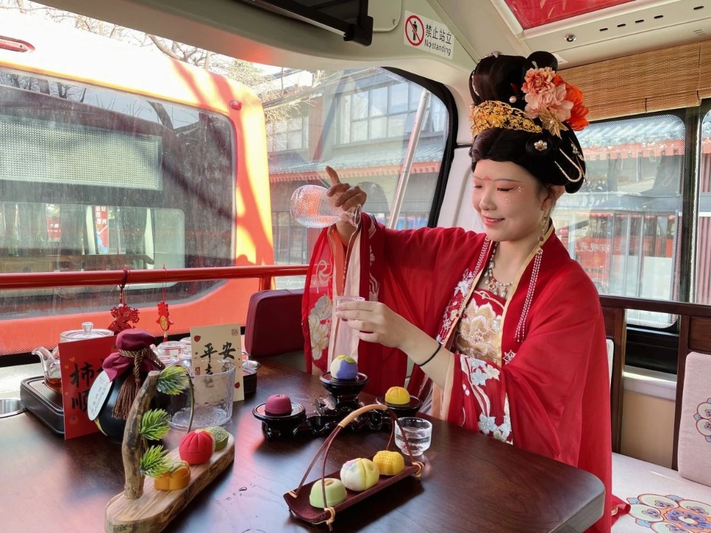 據(jù)悉,西安城市觀光車新春上線的長安尋夢項目以“唐文化”為主軸線,以南北方向穿越西安城區(qū),全程運行時間大約為2-3小時,該項目深度模擬唐朝“科舉”制度——國子監(jiān)招賢納士,以觀光車為空間載體,以“詩”“書”“禮”“樂”“武”為標準,廣納天下賢才。長安尋夢首批5個唐朝名仕伴游分別為:李白、楊貴妃、高力士、上官婉兒、琵琶女,市民游客可根據(jù)個人喜好,選擇伴游人物,登上車門,參加比試。