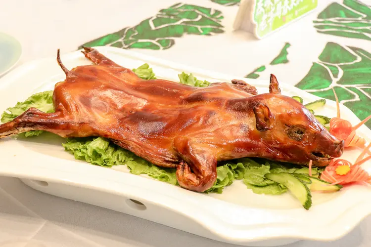 如今的烤乳豬在古法基礎(chǔ)上大幅革新。選用三個月大的乳豬,以汾酒、腐乳、五香粉等調(diào)料腌制數(shù)小時,去除腥味的同時賦予肉質(zhì)醇厚底味。烤制時改用現(xiàn)代控溫烤爐,先以中火烘熟內(nèi)部,再調(diào)高溫度炙烤表皮,期間反復(fù)刷涂糖水以形成酥脆焦糖層。全程耗時約三小時,成品外皮金黃酥脆,肉質(zhì)細(xì)嫩多汁,既保留了傳統(tǒng)風(fēng)味,又契合現(xiàn)代人對效率與口感的雙重需求