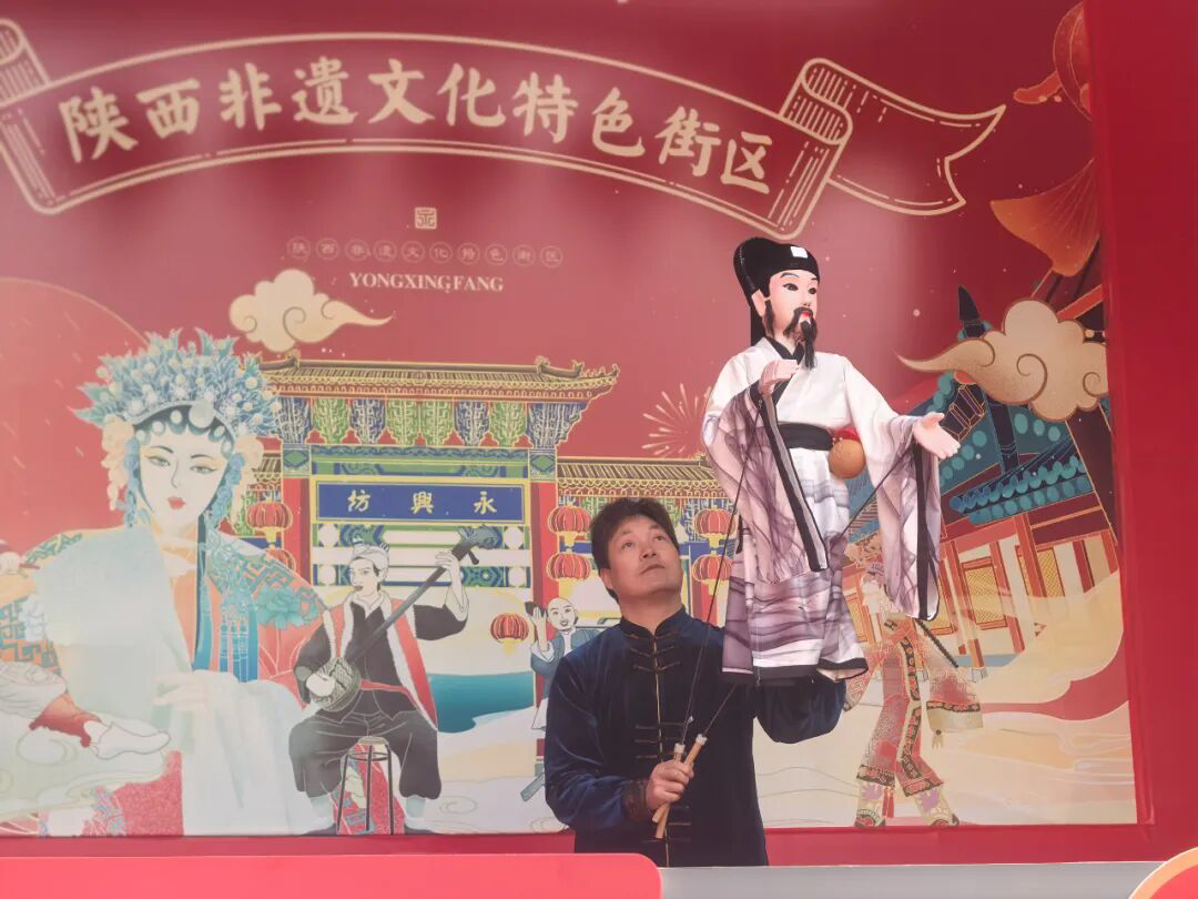 西安永興坊內(nèi),木偶“李白”與游客互動  秦毅 攝