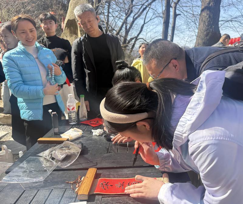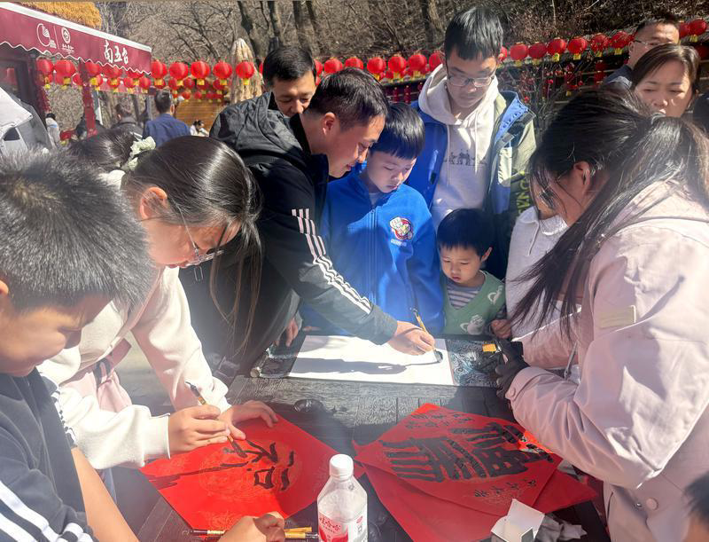 2月21日,初五迎財(cái)神之際,終南山南五臺(tái)景區(qū)迎來(lái)客流高峰,蜿蜒的登山步道上,摩肩接踵的游人拾級(jí)而上,在登高望遠(yuǎn)中許下新年步步高升的美好期許。丙午馬年新春期間,景區(qū)精心策劃非遺體驗(yàn)活動(dòng),木版年畫拓印、福字手繪等攤位前人頭攢動(dòng),大人小孩齊動(dòng)手,在筆墨與拓印的趣味體驗(yàn)中,沉浸式感受中華優(yōu)秀傳統(tǒng)文化的魅力。此外,景區(qū)內(nèi)傳統(tǒng)民樂(lè)與現(xiàn)代彈唱交融,財(cái)神人偶與游客暖心互動(dòng),讓新春的喜悅在山間不斷傳遞。