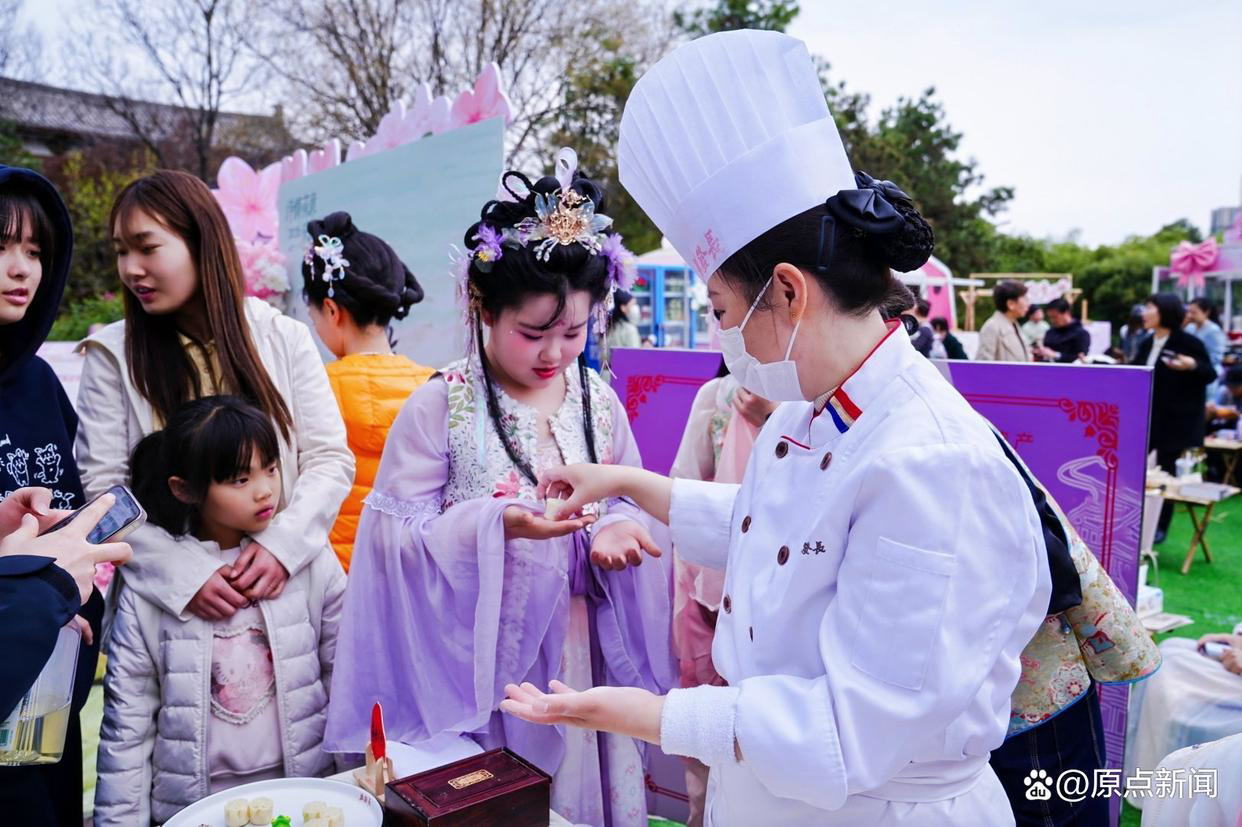 在櫻花爛漫的青龍寺,唐詩(shī)飛花令趣味上演。詩(shī)人NPC與游客現(xiàn)場(chǎng)對(duì)詩(shī)接龍,贏取櫻花酥、青團(tuán)、祈福柳枝與春日飲品,在繁花之下赴一場(chǎng)浪漫詩(shī)意之約?,F(xiàn)場(chǎng)更有老字號(hào)非遺技藝展演精彩亮相,傳統(tǒng)匠心與春日詩(shī)意相映成趣,盡顯長(zhǎng)安獨(dú)有的風(fēng)雅食韻。