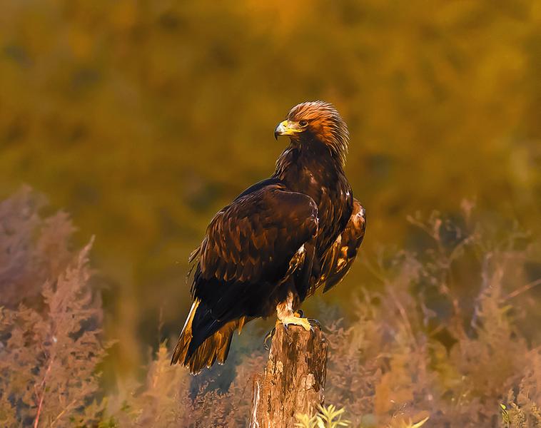 金雕屬于國家Ⅰ級重點保護(hù)野生動物,隸屬于鳥綱鷹形目鷹科,是典型的處于食物鏈頂級的大型猛禽。其體長可達(dá)