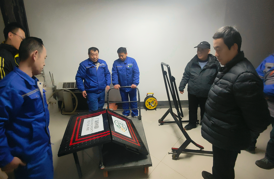 在廣瑞物業(yè)勝利項目部觀看了“方形井蓋提升器”“樓梯踏步作業(yè)平臺”職工創(chuàng)新成果,聽取了兩個成果的設(shè)計原理、應(yīng)用場景。